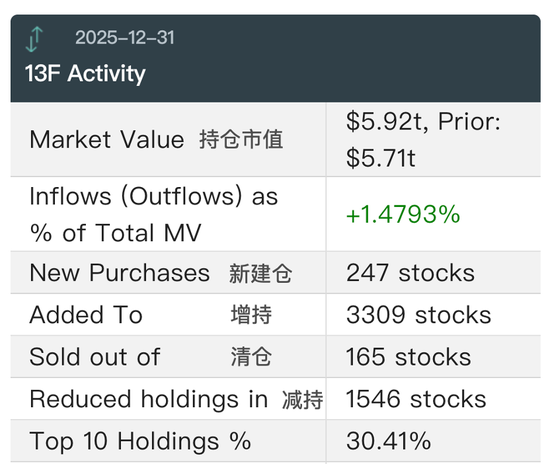 数据披露,完了2025年末,贝莱德好意思股握仓总市值达5.92万亿好意思元,较上季度增多约2100亿好意思元,环比增多3.67%。