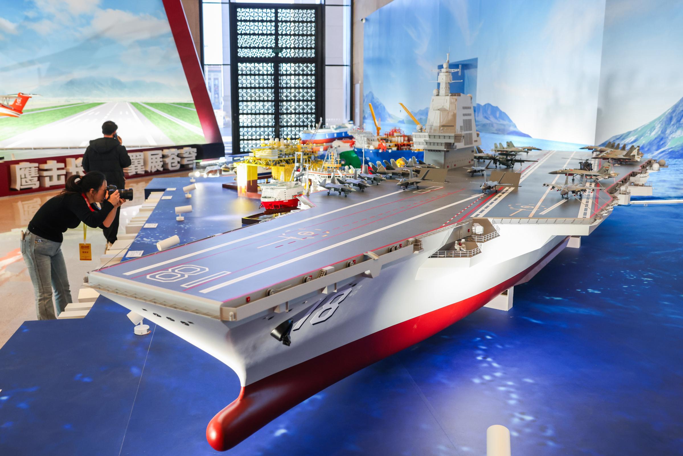 沙盘一侧,福建舰1:50模子领衔,“爱达·魔齐号”大型邮轮、“梦思号”大洋钻探船等海上重器阵列,彰显中国船舶工业的硬核突破。沙盘另一侧,形势了中国东谈主的飞天梦。长征系列输送火箭1:10模子、神舟飞船1:5模子傲然屹立,仿佛下一秒就要穿越天穹。